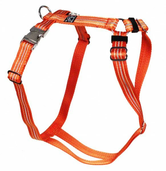 Das Material des Brustgeschirr´s besteht aus qualitativ hochwertigen Nylonbändern, welche einer Belastung bei Zug des Hundes 1,2 bis 2,0 Tonnen stand hält.