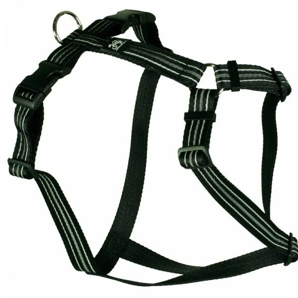 Das Material des Brustgeschirr´s besteht aus qualitativ hochwertigen Nylonbändern, welche einer Belastung bei Zug des Hundes 1,2 bis 2,0 Tonnen stand hält.