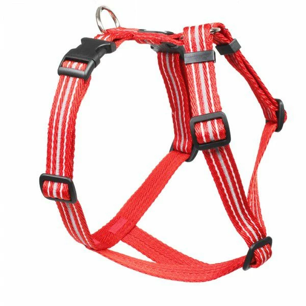 Das Material des Brustgeschirr´s besteht aus qualitativ hochwertigen Nylonbändern, welche einer Belastung bei Zug des Hundes 1,2 bis 2,0 Tonnen stand hält.
