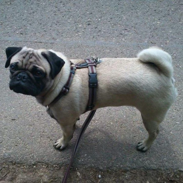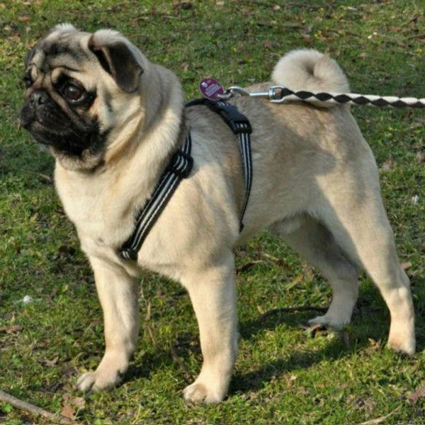 Endlich ein passendes Hundegeschirr für den Mops oder Rassen mit ähnlich kurzem Rücken.