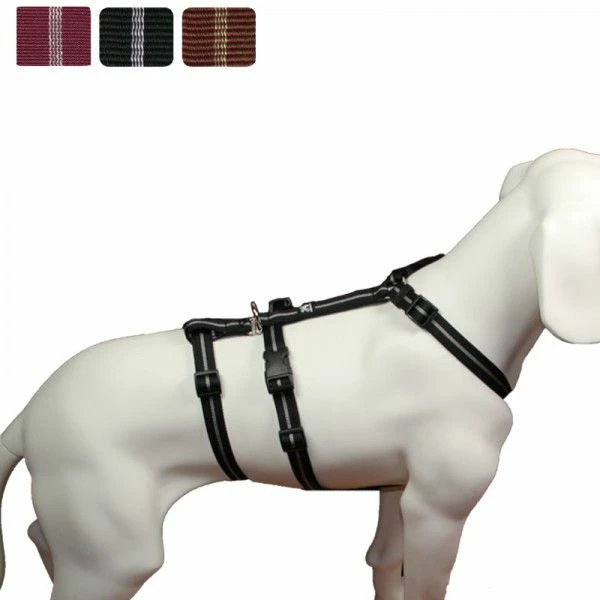 Das Material des Brustgeschirr´s besteht aus qualitativ hochwertigen Nylonbändern, welche einer Belastung bei Zug des Hundes 1,2 bis 2,0 Tonnen stand hält.
