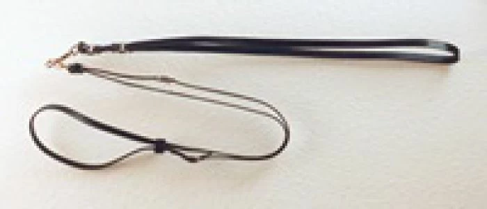 Die Merothischen Reiterleine besitzt ein integriertes Halsteil. Sie benötigen kein zusätzliches Halsband. Vor der ersten Verwendung müssen Sie aber – wie auch beim Halsband – einmal die Halsweite einstellen. Sie haben die Möglichkeit der individuellen Verstellbarkeit. Im oberen Bereich des Systemteils der Leine sind Bohrungen angebracht. Im Bereich dieser Bohrungen ist ein Stahlschiffchen angebracht. Durch das Verschieben dieses Schiffchen innerhalb dieses Bohrungsbereichs können Sie die Halsweite verstellen. Achten Sie darauf, dass nach einem Verstellen im oberen Bereich des Systems Schiffchen, Lederschlaufe und Wirbel wieder eng beieinanderliegen.